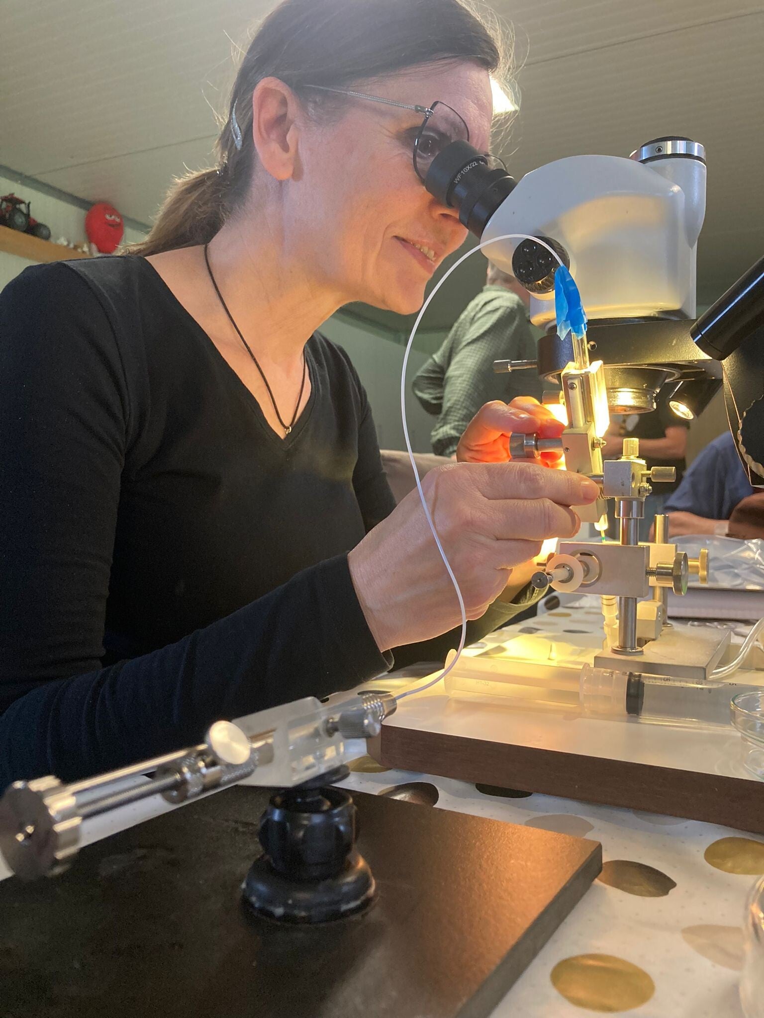 Wij houden ons bezig met de kweek van varoa resistente bijen. De kweek doen wij via kunstmatige inseminatie en het selecteren van goede p moeren.